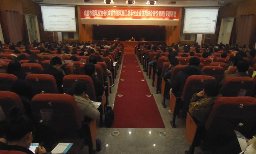 為幫助施工總承包企業(yè)及時了解、掌握成都市建設(shè)領(lǐng)域企業(yè)信用綜合評價體系。由成都市建筑業(yè)協(xié)會主辦、成都建信優(yōu)加教育咨詢有限公司承辦的《成都市建筑施工總承包企業(yè)信用綜合評價管理暫行辦法》專題講座于12月20日在省委黨校蜀光大廈國際學(xué)術(shù)演講廳舉行。我市建筑施工總承包企業(yè)相關(guān)人員500余人參加了專題講座。