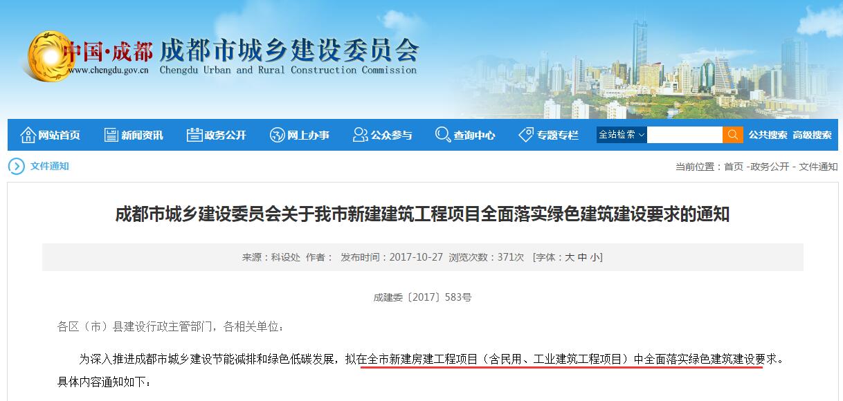 成都市城鄉(xiāng)建設(shè)委員會(huì)關(guān)于我市新建建筑工程項(xiàng)目全面落實(shí)綠色建筑建設(shè)要求的通知