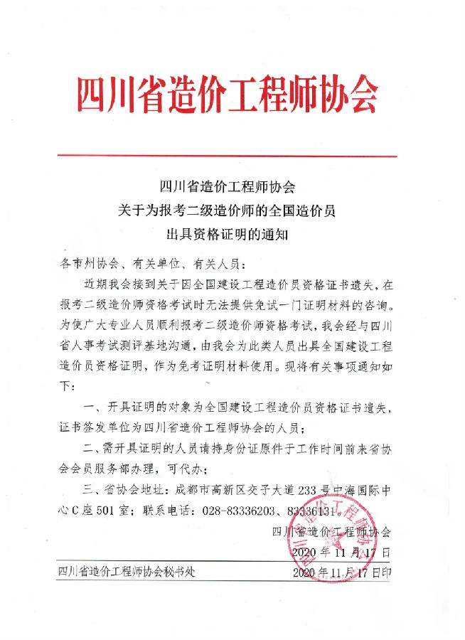 關(guān)于報(bào)考二級(jí)造價(jià)師的全國(guó)造價(jià)員出具資格證明的通知