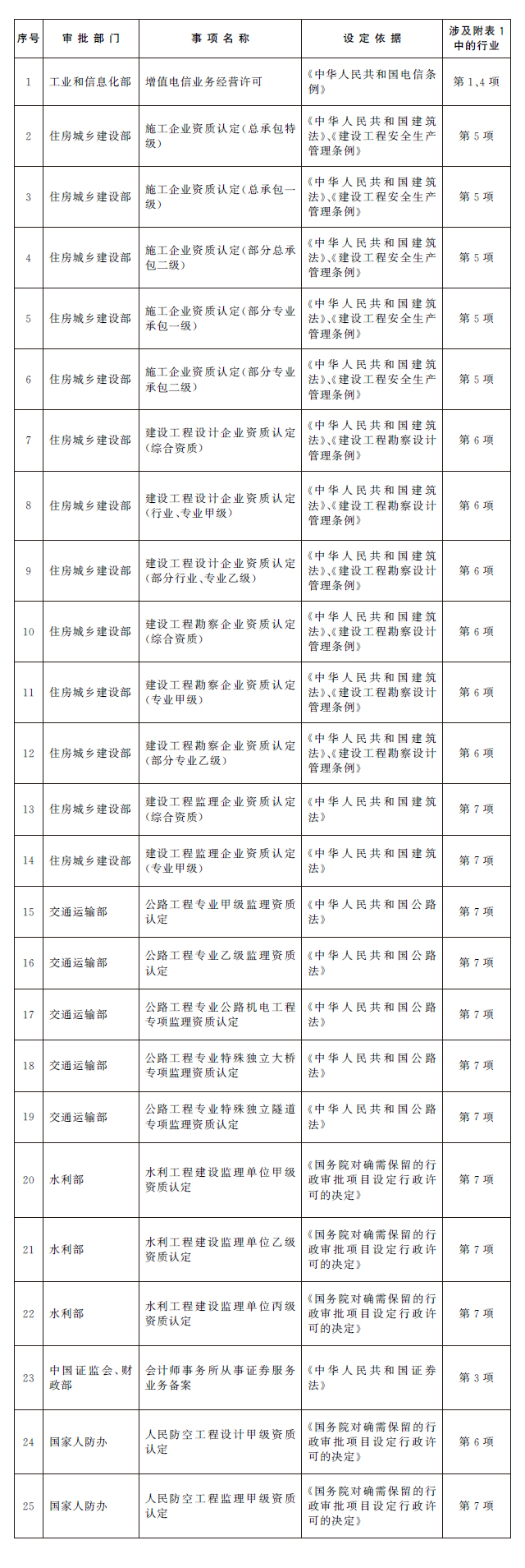 附表:1.首批納入“一業(yè)一證”改革試點的行業(yè)目錄