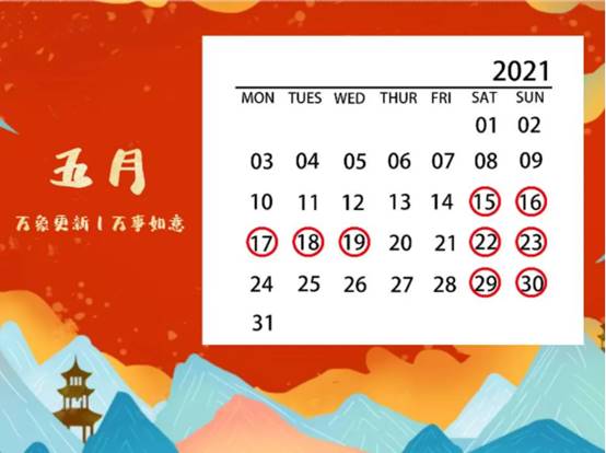 5月15—19日、22—23日: