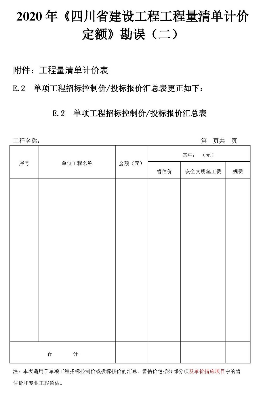 2020年《四川省建設(shè)工程工程量清單計(jì)價(jià)定額》勘誤(二)