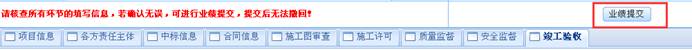 1.??項目環(huán)節(jié)業(yè)務(wù)產(chǎn)生的工程業(yè)績。建設(shè)單位運用一體化平臺“施工許可證管理系統(tǒng)”辦理了施工許可證的工程,應(yīng)采用建設(shè)單位辦理竣工驗收備案的方式自動成為參建企業(yè)的業(yè)績。建設(shè)單位運用一體化平臺辦理了竣工驗收備案管理的工程,平臺為該工程參建企業(yè)在一體化平臺中“房建市政業(yè)績”列表中自動生成了一條已辦結(jié)通過的業(yè)績,自動進(jìn)入全省統(tǒng)一的企業(yè)業(yè)績數(shù)據(jù)庫。