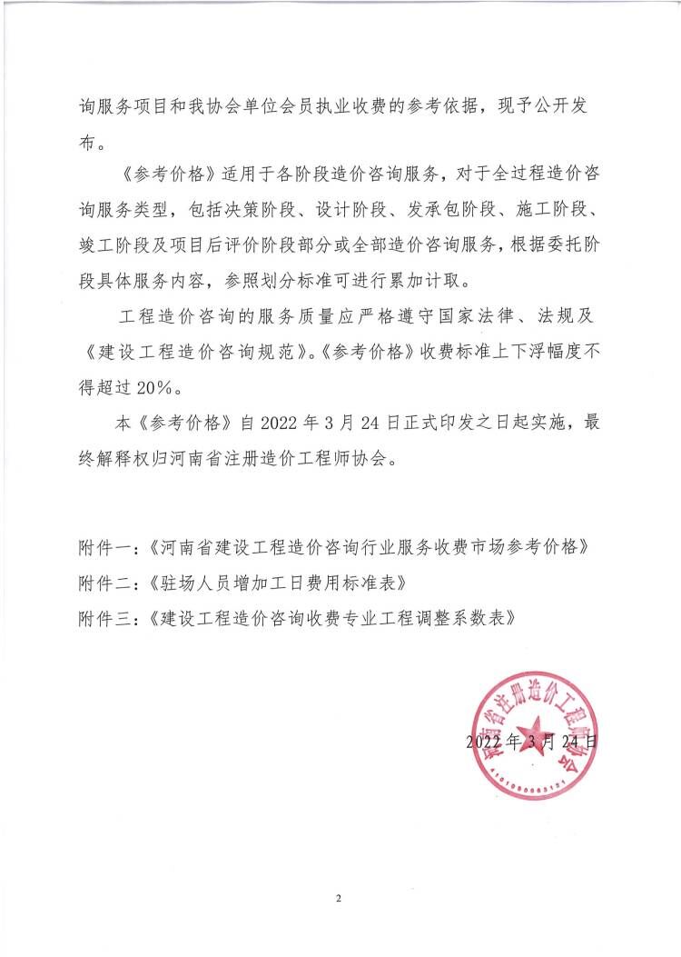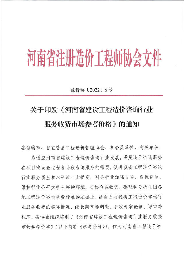 關(guān)于印發(fā)《河南省建設(shè)工程造價(jià)咨詢行業(yè)服務(wù)收費(fèi)市場(chǎng)參考價(jià)格》的通知
