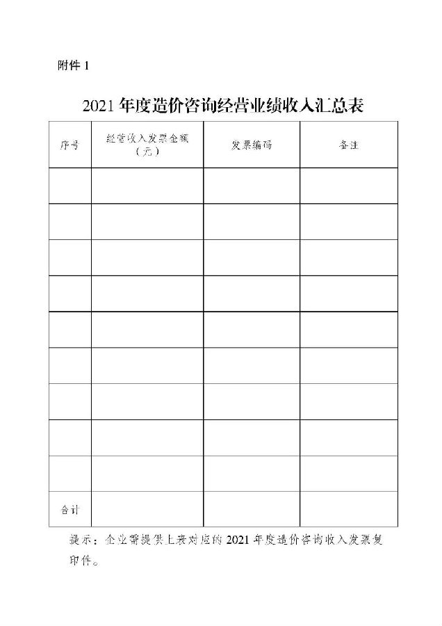 1.企業(yè)2021年度全年造價咨詢經(jīng)營業(yè)績收入?yún)R總資料(附件1);