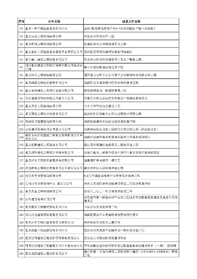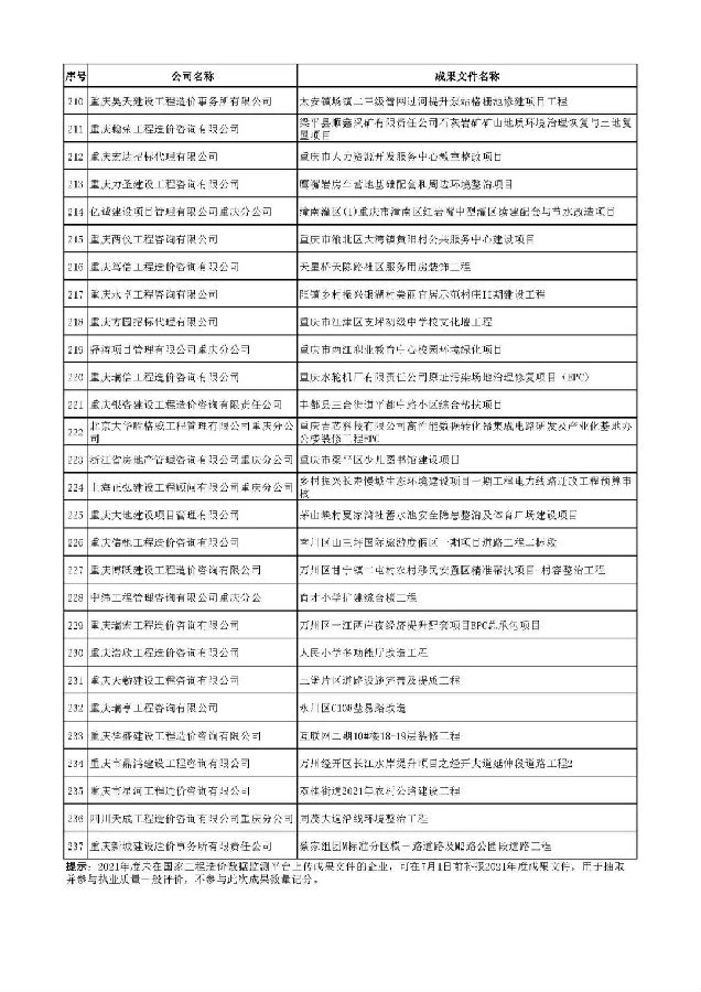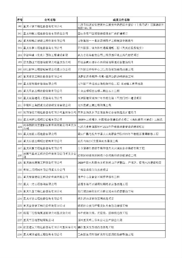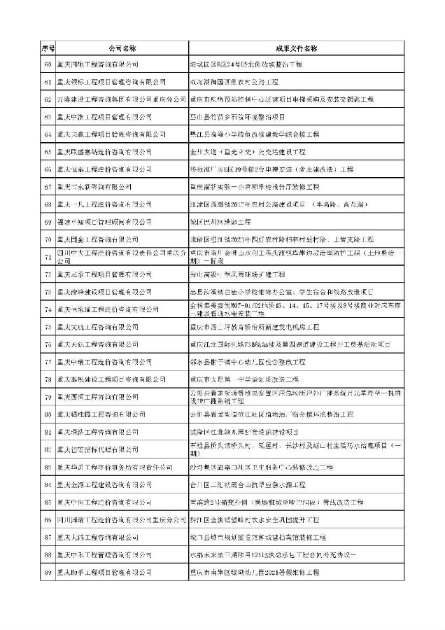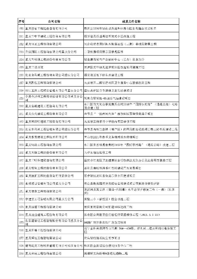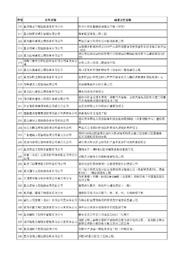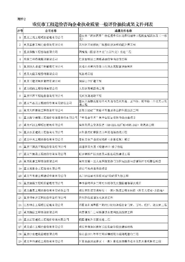 2.重慶市工程造價咨詢企業(yè)執(zhí)業(yè)質(zhì)量一般評價抽檢成果文件列表