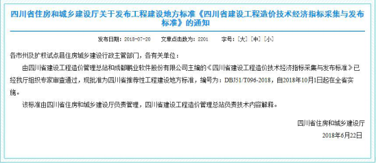 為了建立科學的、全面的、適用的建設(shè)工程造價技術(shù)經(jīng)濟指標采集與發(fā)布體系,實現(xiàn)建設(shè)工程造價數(shù)據(jù)資源的科學積累和有效利用,突破數(shù)據(jù)積累交換障礙,規(guī)范建設(shè)工程造價技術(shù)經(jīng)濟指標的基礎(chǔ)數(shù)據(jù)采集內(nèi)容和發(fā)布格式,更全面、系統(tǒng)、科學地采集、整理和發(fā)布工程造價數(shù)據(jù)。四川發(fā)布工程建設(shè)地方標準(四川省建設(shè)工程造價技術(shù)經(jīng)濟指標采集與發(fā)布標準(DBJ51/T096-2018))。