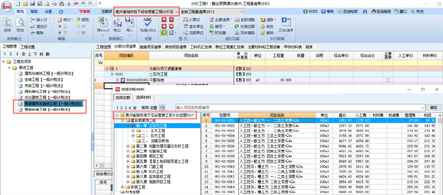 預算通i9(貴州) | 單機版 | 2500 | 升級 | 貴州2004定額升級貴州2016定額+貴州省城市地下綜合管廊工程計價定額2017 |