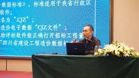 “數(shù)據(jù)標(biāo)準(zhǔn)”參編專家,鵬業(yè)軟件公司唐世進(jìn)經(jīng)理,對(duì)《四川省建設(shè)工程造價(jià)電子數(shù)據(jù)標(biāo)準(zhǔn)》的調(diào)整變化及在招投標(biāo)中的應(yīng)用進(jìn)行了講解,進(jìn)一步鞏固參會(huì)人員對(duì)“2020定額”及“評(píng)審辦法”的理解。