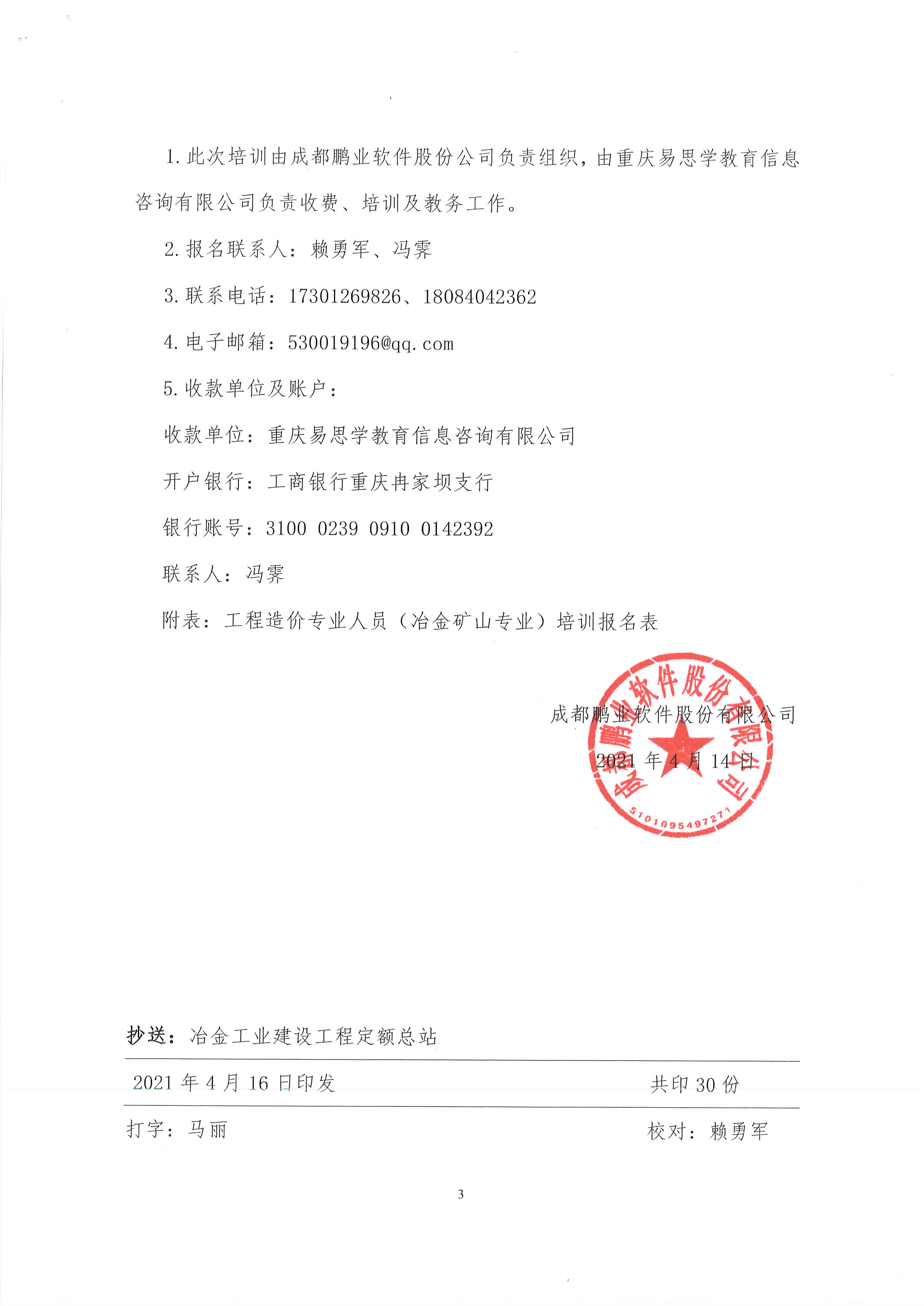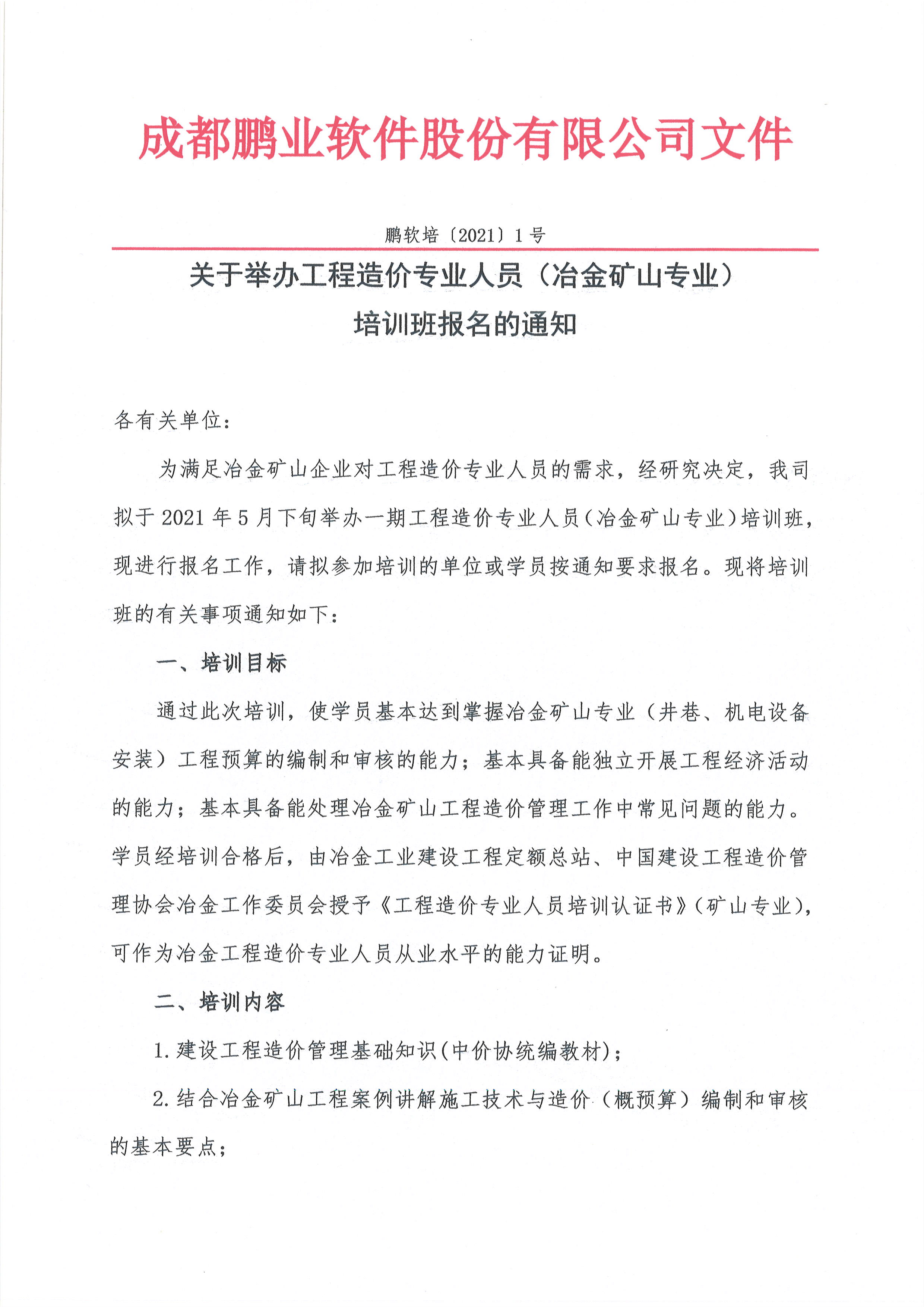 成都鵬業(yè)軟件股份有限公司根據(jù)礦山工程造價(jià)專業(yè)人員市場需求情況,擬舉辦一期工程造價(jià)專業(yè)人員(冶金礦山專業(yè))面授培訓(xùn)班,從事冶金礦山工程管理及工程預(yù)結(jié)算相關(guān)工作的從業(yè)人員,可結(jié)合自身工作需要報(bào)名參加此次培訓(xùn),具體通知如下:
