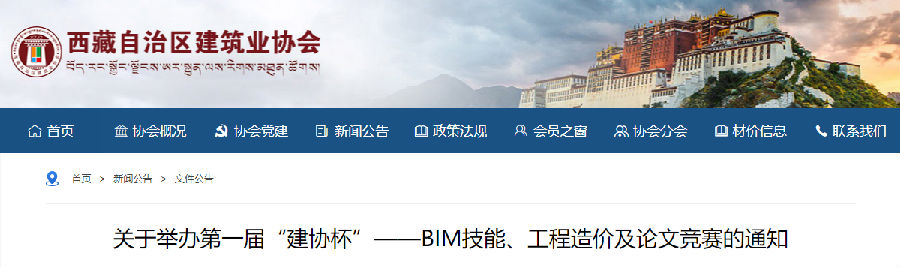 西藏自治區(qū)建筑業(yè)協(xié)會(huì)第一屆“建協(xié)杯”——BIM技能、工程造價(jià)及論文競(jìng)賽。