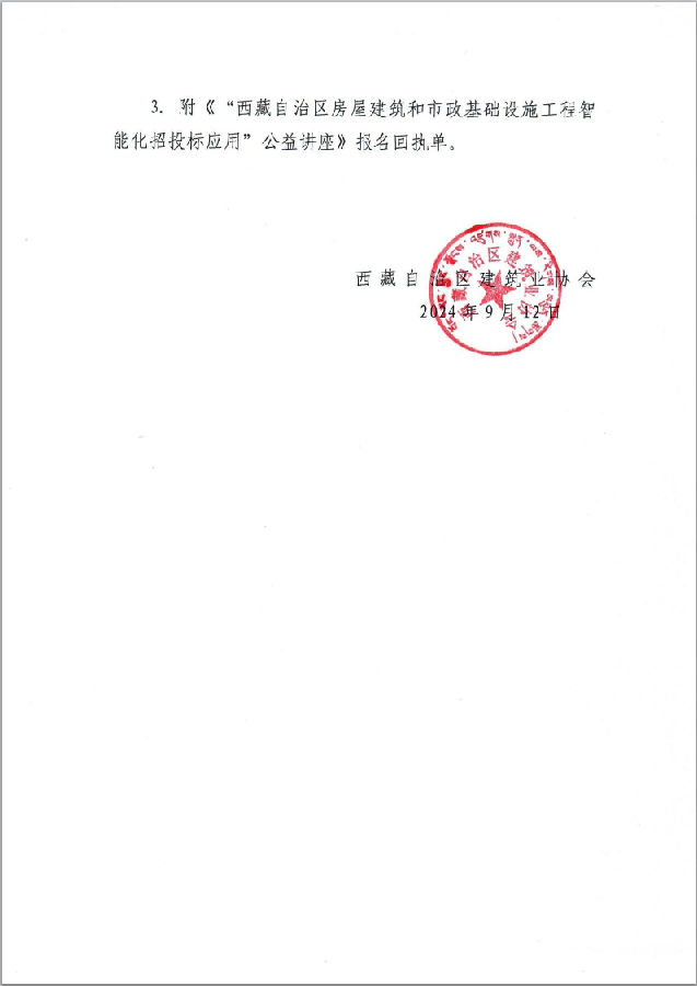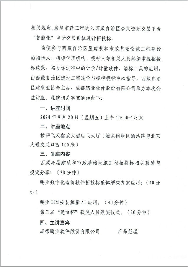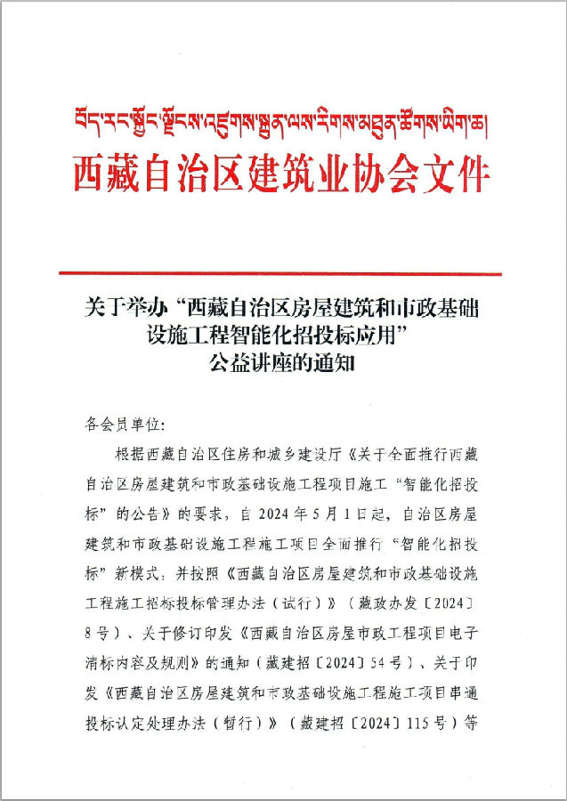 關(guān)于舉辦“西藏自治區(qū)房屋建筑和市政基礎(chǔ)設(shè)施工程智能化招投標應(yīng)用’公益講座的通知