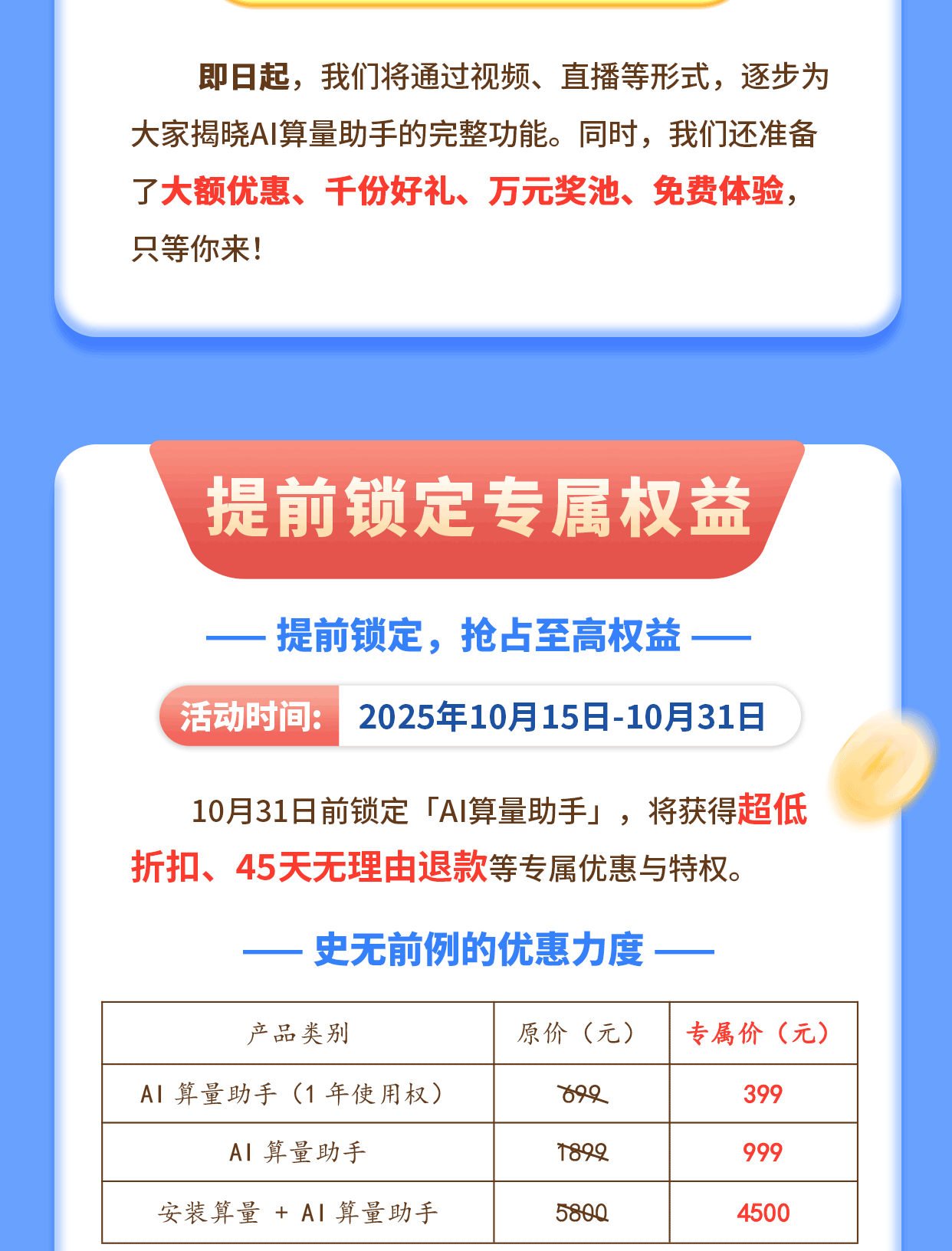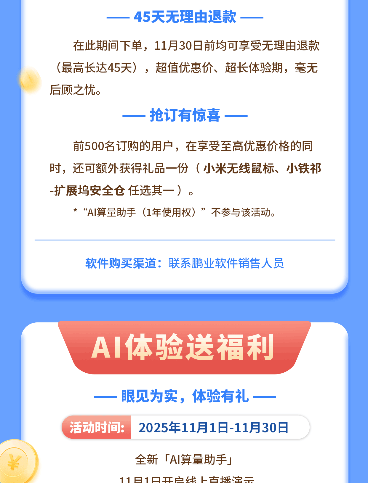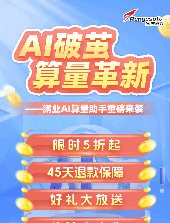 鵬業(yè)AI算量助手重磅來襲——限時(shí)5折起,45天退款保障