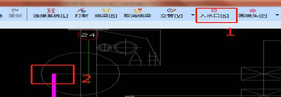 (3) 找到正確的入水口(截止閥位置):單擊畫入水口1,選擇相應(yīng)的位置點(diǎn)畫2。
