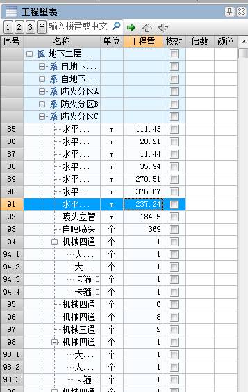(4) 在左側(cè)的工程量表就可以看到整個(gè)噴淋的工程量: