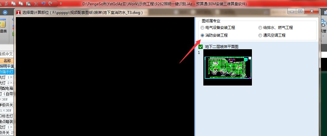 2. 選擇噴淋專業(yè)的圖紙,單擊確認(rèn),選擇相應(yīng)的專業(yè)。