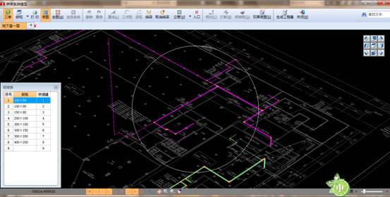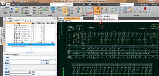 建立工程之后導(dǎo)入相應(yīng)的圖紙,點(diǎn)擊橋架識別的按鈕1,選中相應(yīng)的圖紙2,直接識別,同時(shí)可以生成三維模型。