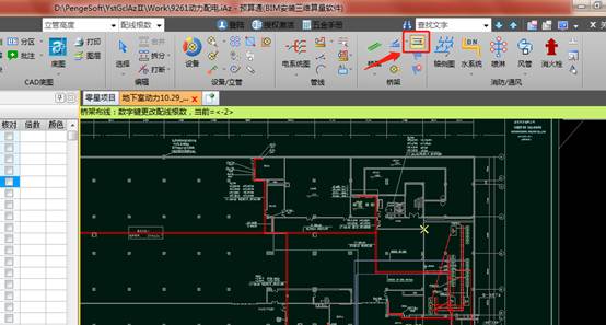2. 按照提示,單擊相應(yīng)的低壓柜為起點(diǎn),在單擊相應(yīng)的配電箱作為終點(diǎn),系統(tǒng)自動識別回路如圖1,計(jì)算配線長度,自動判斷橋架外配管長度。如下圖2: