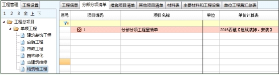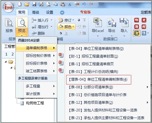 2、新增清單編制表格---【增表-04】單位工程清單編制表格