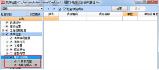 二)單價(jià)計(jì)算表檢查功能增加:?jiǎn)蝺r(jià)計(jì)算表為空\清單定額不一致檢查。