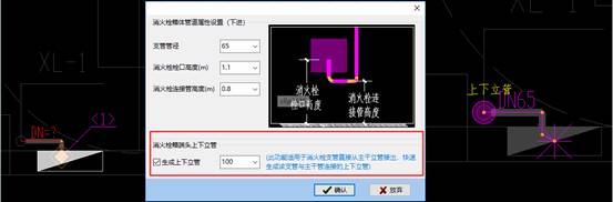 該功能適用于消火栓支管直接從主干管接出,快速生成該支管與主干管鏈接的上下立管,上下立管的高度根據(jù)樓層高度及管道敷設(shè)高度自動計算