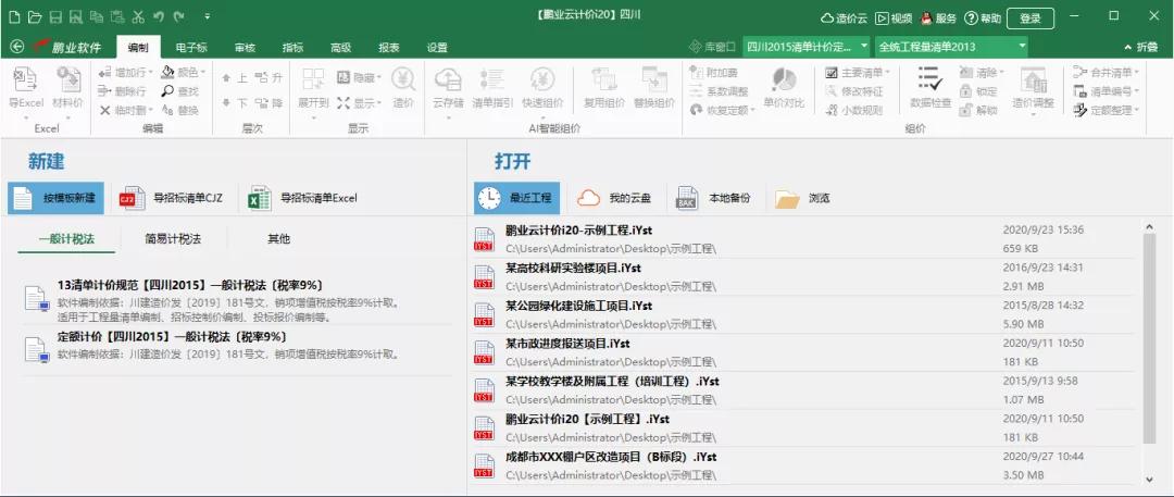 鵬業(yè)云計(jì)價(jià)i20,功能更加強(qiáng)大,軟件界面扁平化風(fēng)格,更為簡(jiǎn)潔直觀,功能按鈕分組排列,采用圖標(biāo)+文字按鈕方式,易于查找,功能菜單分組一目了然,操作指引清晰,更加便捷,操作更加符合用戶習(xí)慣。如圖示: