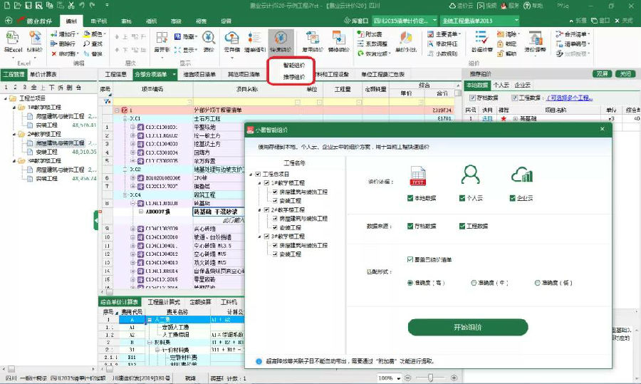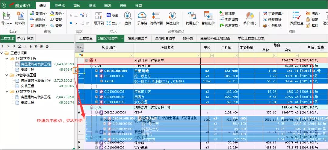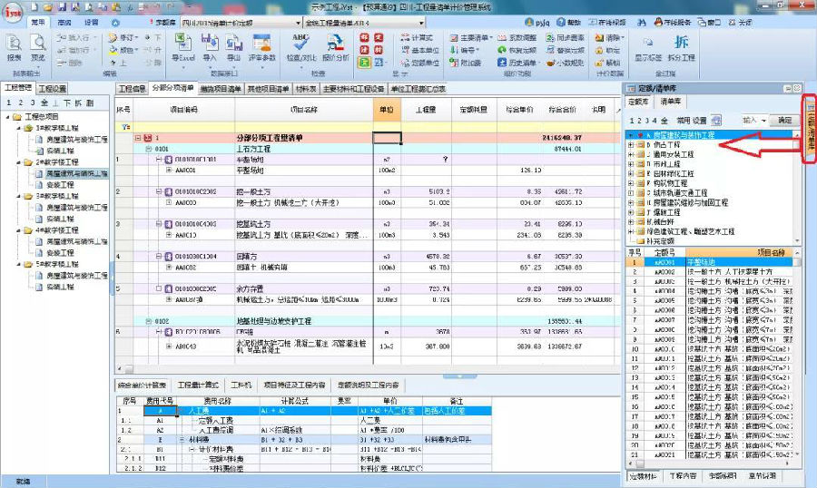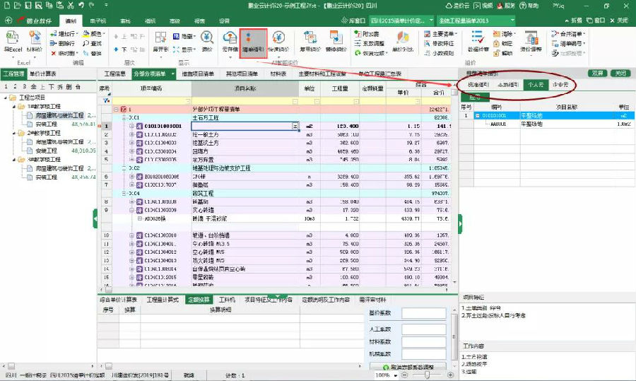 通過(guò)清單庫(kù)、定額庫(kù)窗口,快速實(shí)現(xiàn)清單、定額錄入。如圖示: