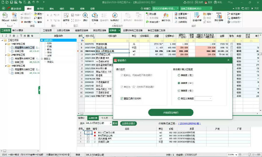 依據(jù)材料價(jià)格信息庫(kù),一鍵快速查詢、調(diào)整材料價(jià)格。如圖示: