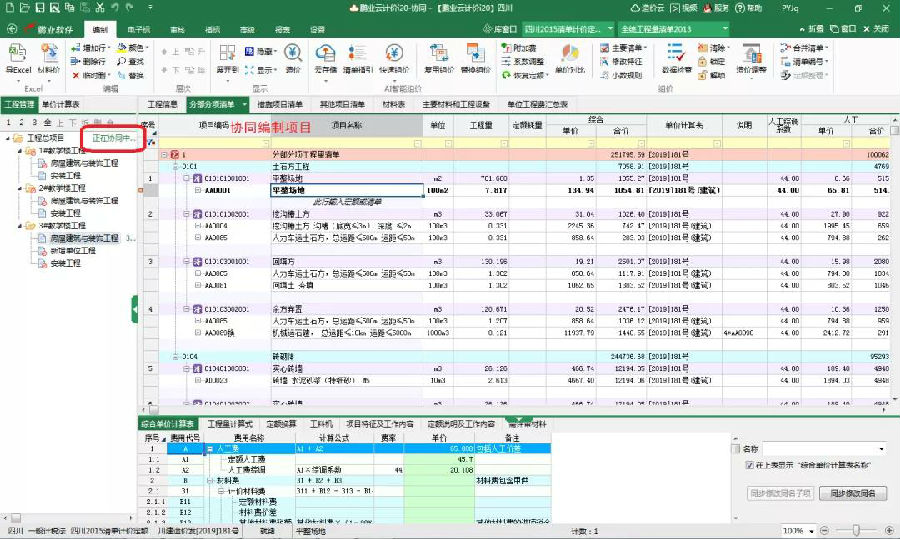 同一項(xiàng)目在線化多人同時(shí)編制,權(quán)限設(shè)置、分配模式靈活,相互查看編制過(guò)程數(shù)據(jù)、數(shù)據(jù)自動(dòng)同步,匯總數(shù)據(jù)實(shí)時(shí)查看。如圖示: