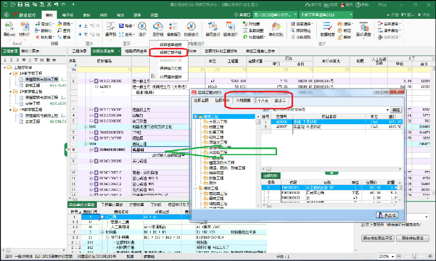 將工程中組價定額數(shù)據(jù)“保存定額子目”,快速形成企業(yè)自編定額,提升企業(yè)競爭力。如圖示: