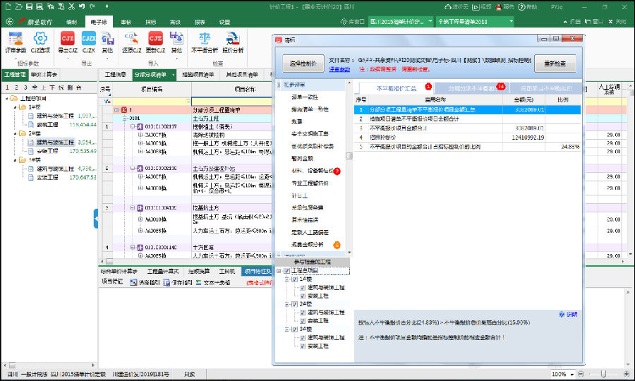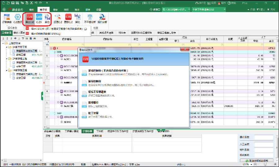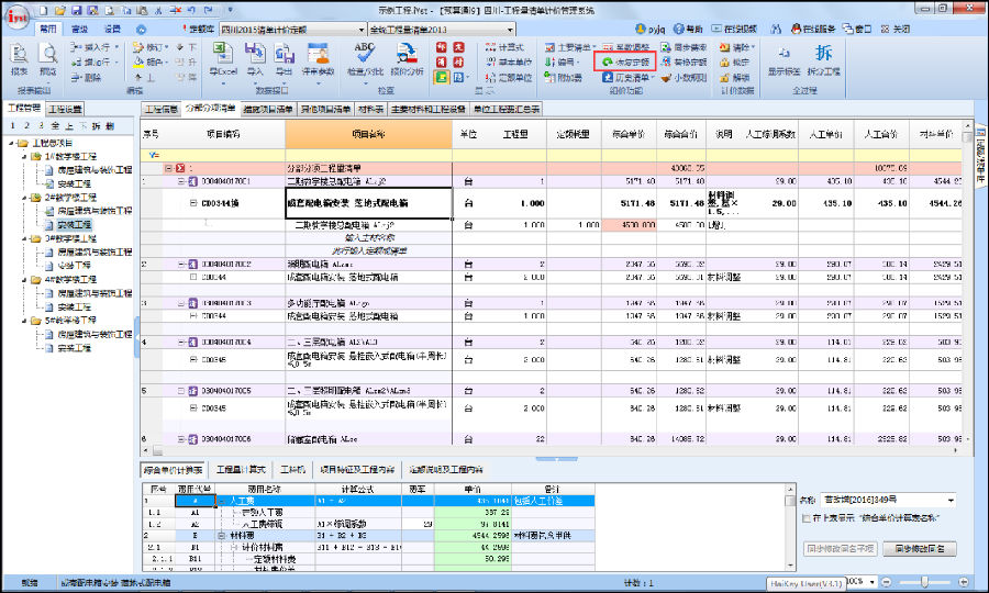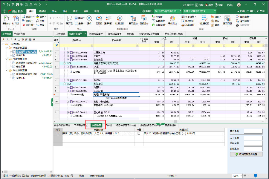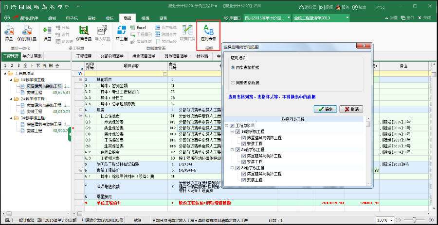 一個工程文件中某些單位工程表格內(nèi)容修改調(diào)整后,可直接同步應(yīng)用到其他單位工程。如圖示: