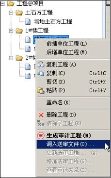 ①在工程樹(shù)任意節(jié)點(diǎn)點(diǎn)擊右鍵,選擇“選擇送審文件生成審計(jì)”;