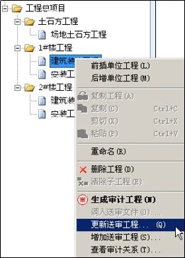 ① 對(duì)需變更的單位工程點(diǎn)擊右鍵,選擇“更新送審工程”;