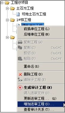 在審計(jì)過(guò)程中,可能存在送審工程在第一次報(bào)送時(shí),未完全上報(bào)項(xiàng)目,對(duì)于之后補(bǔ)報(bào)的內(nèi)容,在過(guò)去可能只有重新另起一份審計(jì)工程來(lái)完成,現(xiàn)在僅需通過(guò)右鍵菜單功能“增加送審工程”,便可以實(shí)現(xiàn)對(duì)審計(jì)工程的補(bǔ)報(bào)。