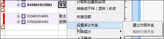 ② 在審定工程清單處點(diǎn)擊右鍵,選擇“設(shè)置審計(jì)關(guān)系”-->“建立對(duì)照關(guān)系”;