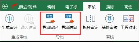 5、審計(jì)完成后,可以通過(guò)高級(jí)菜單中的功能“導(dǎo)出審定”、“導(dǎo)出送審”,分別將送審工程、審核工程進(jìn)行導(dǎo)出,存為獨(dú)立的工程文件。