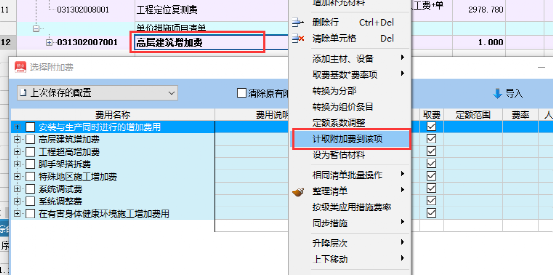 窗口定位到已有清單→右鍵選擇計取附加費(fèi)到該項(xiàng)