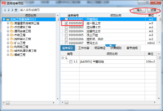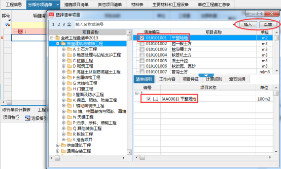 2、根據項目實際情況勾選相對應清單,然后選擇插入/后增