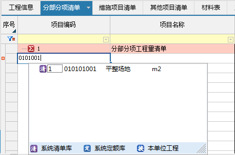 方式2:直接輸入清單編號,如輸入0101001敲擊回車鍵,對應清單就錄入好了;