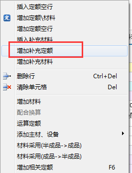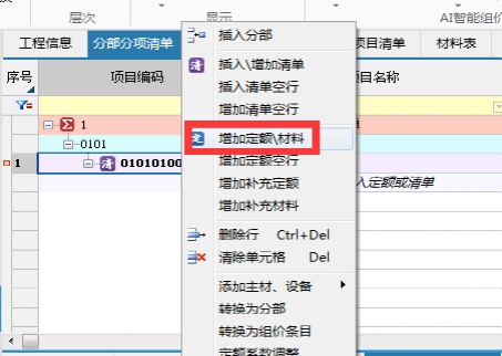 1、清單上--鼠標右鍵選擇增加定額;
