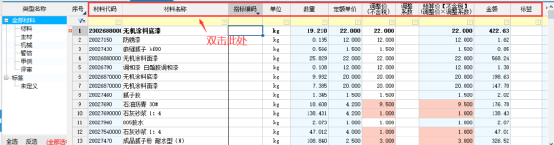 1.1直接輸入材料價(jià)格