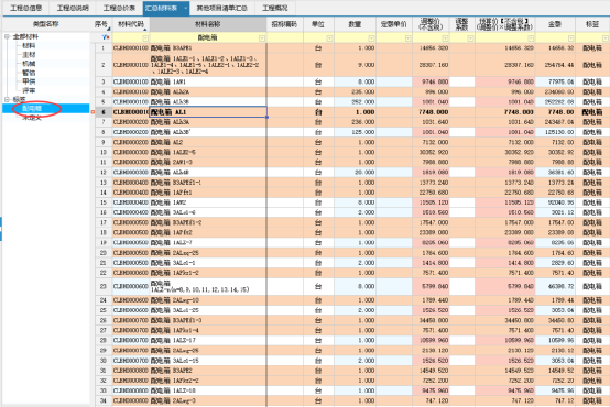 在標(biāo)簽列,把需要的材料打上標(biāo)簽,就可以對這些材料進(jìn)行管理和統(tǒng)計(jì),比如配電箱: