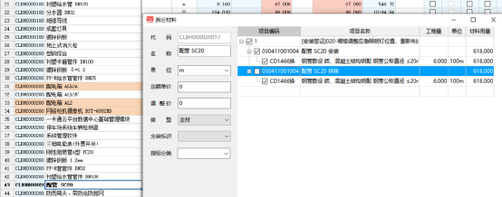 材料拆分:選中需要拆分的材料,單擊右鍵,選擇拆分材料,比如將配管拆分成不同規(guī)格。