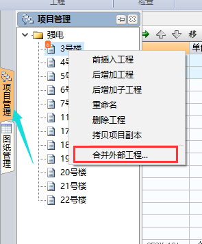 ②工程名稱上鼠標右鍵—合并外部工程
