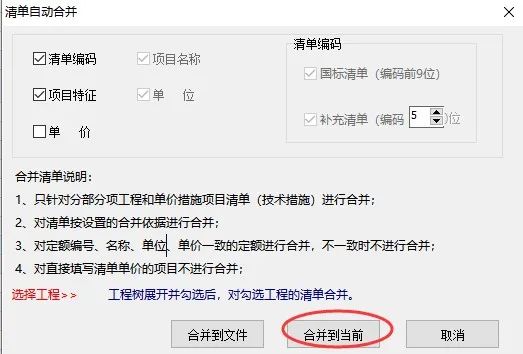 注:組價完成后,切記將“合并清單”單位工程進行刪除噢!