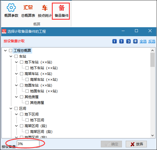 九、鵬業(yè)云計(jì)價(jià)i20(四川軌道)軟件概算模板增加按“設(shè)備概算價(jià)計(jì)取備品備件費(fèi)用”。