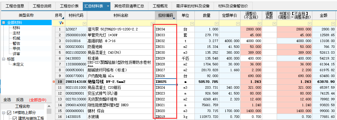 當(dāng)招標文件有相應(yīng)的評審材料、暫估材料時,需要在單位工程里面去響應(yīng)招標文件要求。并且在軟件中工程項目層級把招標的需評審的材料及設(shè)備、材料及暫估價全部顯示,方便進行匹配和招標編碼響應(yīng)。