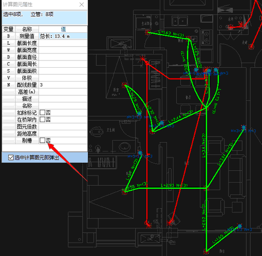 立管設(shè)置剔槽屬性后,剔槽工程量自動(dòng)計(jì)算;