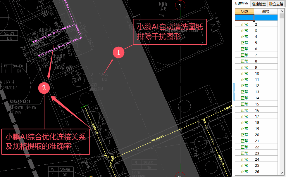 在本次公測(cè)中,小鵬AI主要致力于提升通風(fēng)管道智能識(shí)別準(zhǔn)率!可以幫助用戶在識(shí)別通風(fēng)管道時(shí),自動(dòng)進(jìn)行AI圖紙清洗,結(jié)合AI智能識(shí)別算法大幅提升識(shí)別準(zhǔn)確率!