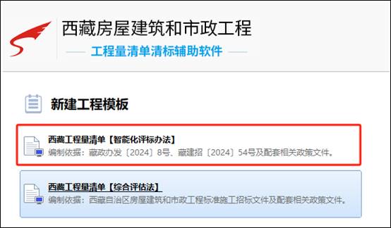 1. 打開軟件,在新建工程的模板里面選擇西藏工程量清單【智能化評(píng)標(biāo)辦法】模板,如圖示: